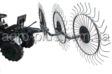 Ширина захвата мотоблочных граблей составляет 1200 мм, диаметр колеса 1200 мм, масса 39 кг.