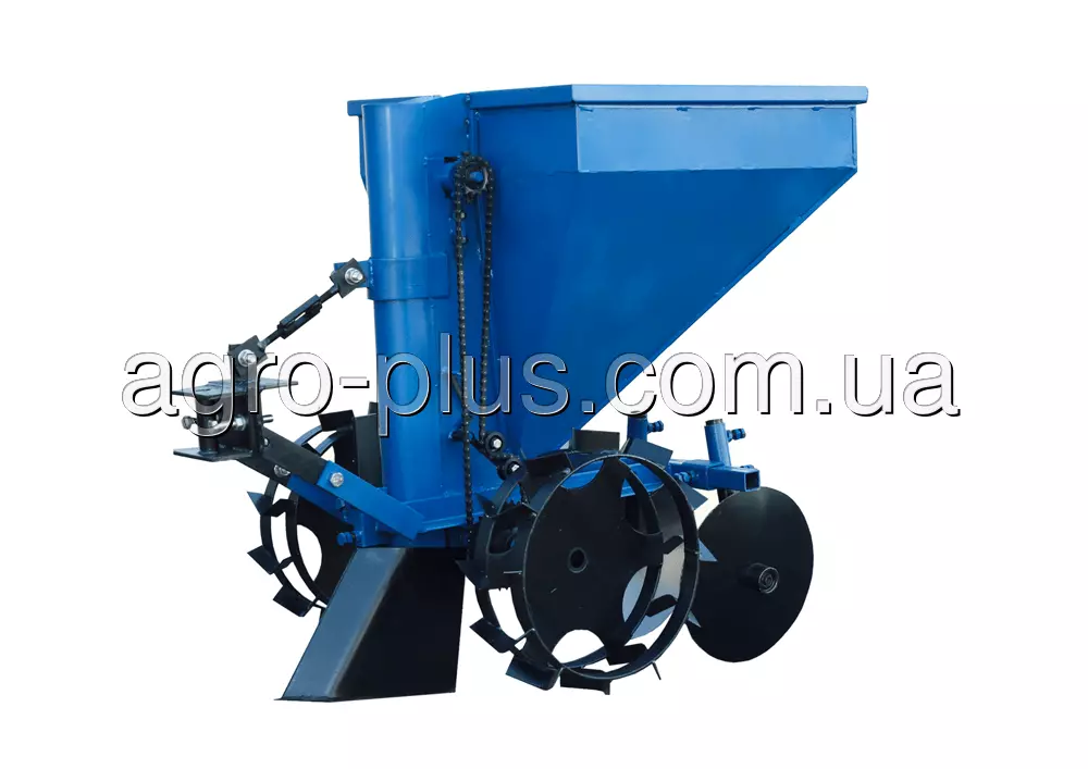 - В зависимости от модификации, картофелесажалка может быть укомплектована дозирующим устройством для внесения удобрений. Объём бункера дозирующего устройства 7л.