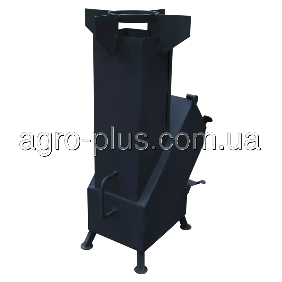 Надійна фіксація і стійкість печей «Ракета» на поверхні забезпечуються завдяки трьом сталевим ніжкам. Дно «Ракети» виготовлено зі сталевого листа товщиною 3 мм.