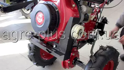 После установки переходника, косилка присоединяется к передней части мотоблока, это даёт возможность осуществлять покос естественным для мотоблока движением вперёд.
